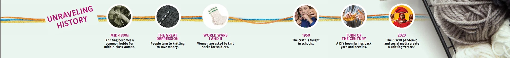 It’s become a familiar global trend: knitting recedes to the background only to be revived during times of hardship, such as war and calamity. The Craft Yarn Council, a Texas-based trade association, traces the explosiveness of the latest boom to social media and the pandemic. Ravelry, a digital yarn crafting network, now has 9 million users worldwide. Sh*t That I Knit, a popular knitwear accessories brand, pivoted its business strategy last year, launching the Quarantine Knitting Kit, which has sold thousands of sets. Because, as the cardinal meme of the moment illustrates, knitting is “not a hobby. It’s a post-apocalyptic life skill.”