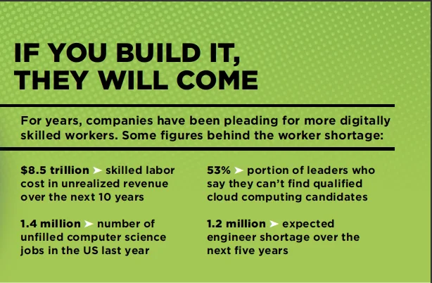 Amazon has committed to providing cloud computing training to 29 million people globally by 2025. Meanwhile, Google offers a subsidized online IT-support certificate that has enrolled tens of thousands of students. IBM, Salesforce, Facebook, and others have additionally expanded content offerings. These programs range from two-day fiber-optic splicing classes to 12-week full-time data engineering and artificial intelligence curriculums.