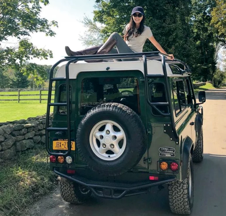 King sitting on the roof of her coniston green 1997 Lander Rover NAS Defender 90.