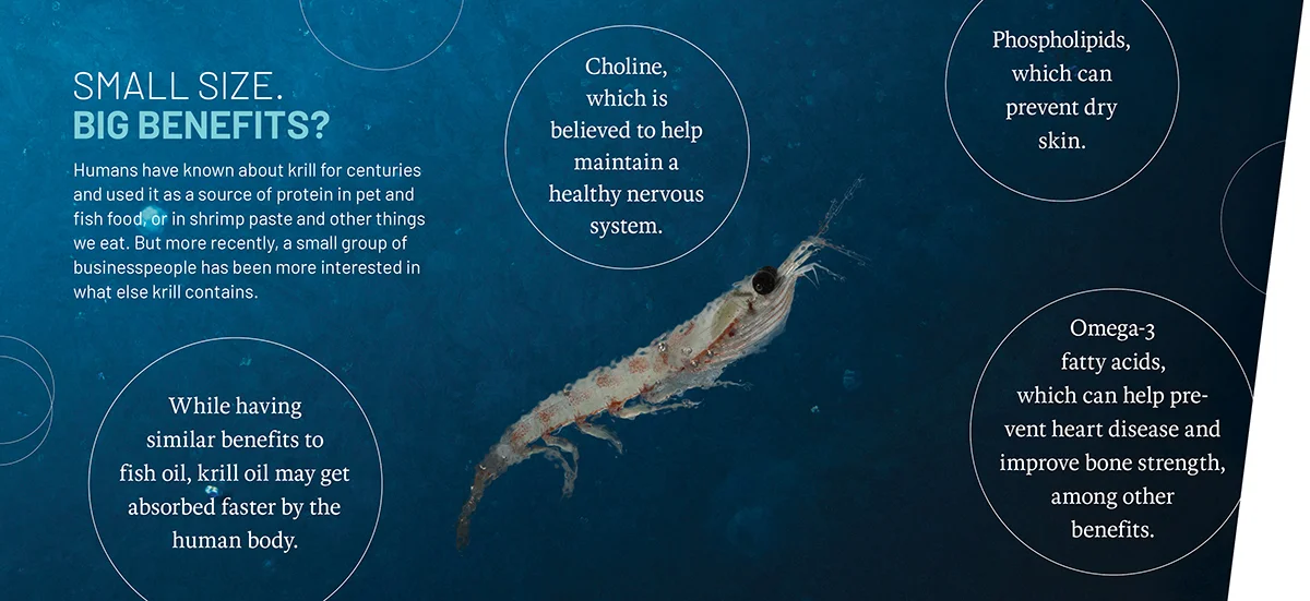 That’s no small ambition. The world population is projected to reach 10 billion people by 2050, and feeding all those people would require a dramatic increase in food production from the sea. Krill can help because it’s used for fish farming, but as Johansen sees it, the biggest opportunity centers around the creature’s potential for humans. Krill oil is full of omega-3 fatty acids, antioxidants, and other nutrients. Worldwide, the krill oil market is worth about $530 million today, but is expected to rise to more than $900 million by 2026, according to Global Industry Analysts.