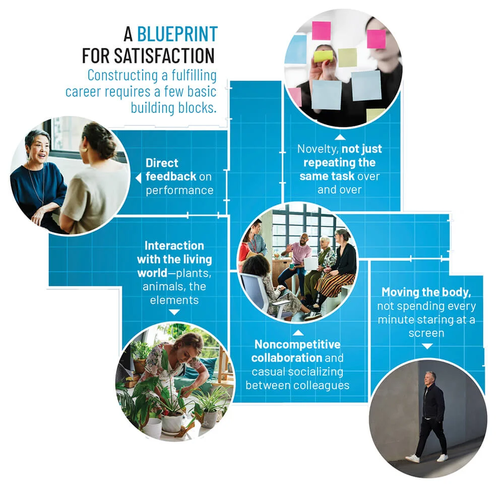 The key building blocks for Hutchison are moving his body (ideally outside and with music playing), having close relationships with those he works with, and getting direct feedback on his efforts. Every step of construction impacts the next. If the framing is not level, plumb, and flush, it’s going to make installing the doors a lot more difficult. And it doesn’t take a committee to evaluate whether a door is hung well. Either it latches easily—or it doesn’t. Matthew Crawford, a fellow at the University of Virginia Institute for Advanced Studies in Culture and author of Shop Class as Soulcraft: An Inquiry into the Value of Work, says it’s not so much whether workers are using their hands but whether they get to use ingenuity.