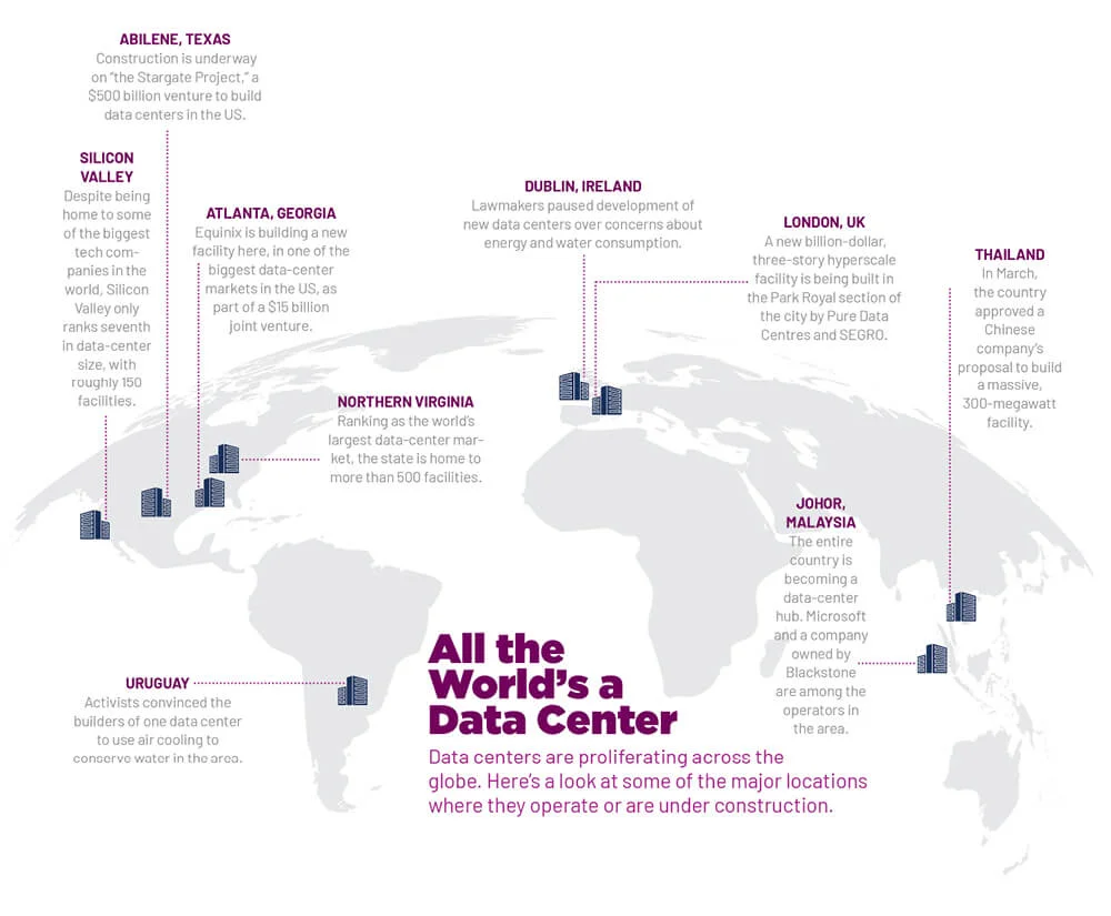 THE PROBLEM Thousands of massive data centers are being built to power the promising but uncertain future of AI.