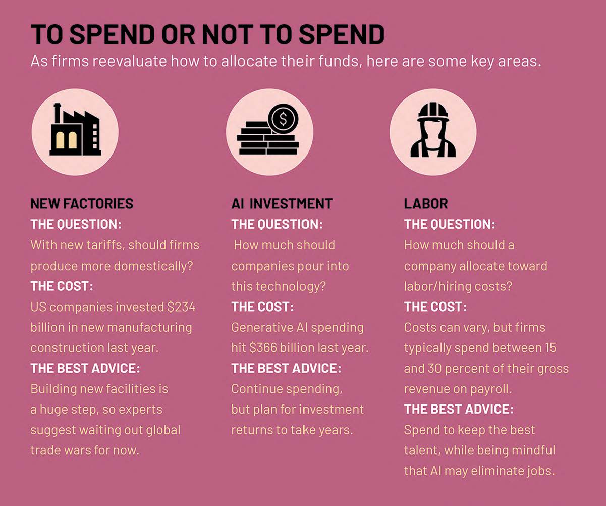 What a time to be trying to figure out how to spend the company’s cash! In 2025, this exercise (usually involving dreary spreadsheets and dry meetings to determine the allocation of a company’s resources) has become considerably more fraught. While they’re certain they need to make massive long-term investments—in technology, supply-chain reorganization, workforce development and other pricey projects—companies feel very little certainty about the short-term business environment. “For CFOs steering the ship, the next six to 12 months could be make-or-break,” says John Signa, CEO and founder of E78 Partners, a finance-focused consultancy.
